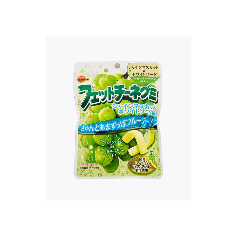 Sugar (domestic and Thai), starch syrup, gelatin, grape juice/acidulant, sorbitol, calcium carbonate, flavoring, gelling agent (pectin), emulsifier, coloring (carotene, safflower yellow, gardenia)