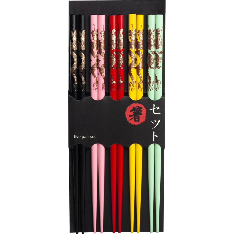 Chopsticks Set 5 Pairs Gold Dragons - 22.5cm