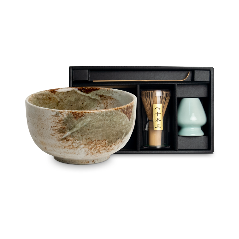 Contains: 1 bowl, 1 spatula, 1 "chasen" whisk, 1 chasen holder